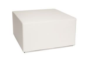 Blue Dot proves that it really is hip to be square with th Blockoid ottoman. What at first appears to be an ottoma can also be used as a creative coffee table or additiona seating in a pinch. Upholstered in a cow-friendly leathe alternative it is easy to clean and available in three colors dark brown, robin egg blue and white
