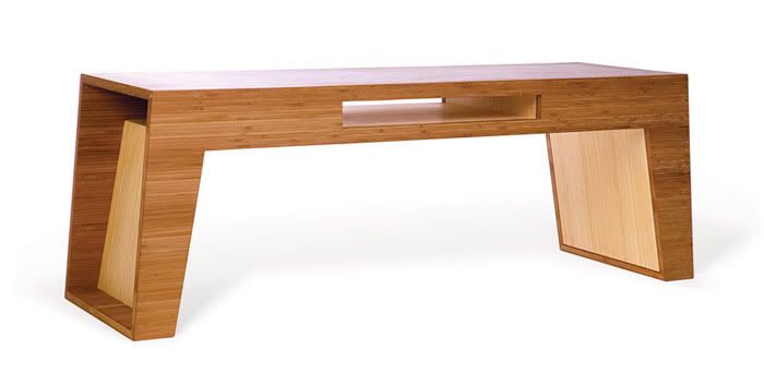 Hollow line of furniture reveals the potential interior in each piece. This bench has hollow cubby access from th sides and a slim opening through the center for you favorite periodical. Clean lines and contrasting tones o dark and light Bamboo are used to show volume an accentuate negative space. The smooth surface is finishe with BioShield Organic Herbal Oil