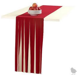 Christmas crackers are a delightful holiday tradition, ful of joyful noise and little toys, jokes and paper crowns Capture the moment when the cracker comes open with thi gorgeous double-length table runner. The contrastin fringe mimics the tatters of the cracker's paper shell framing whatever you put on your table as the presen inside the cracker. Additionally, the runner is reversible -- you can lay it down with either the red or the white side up.