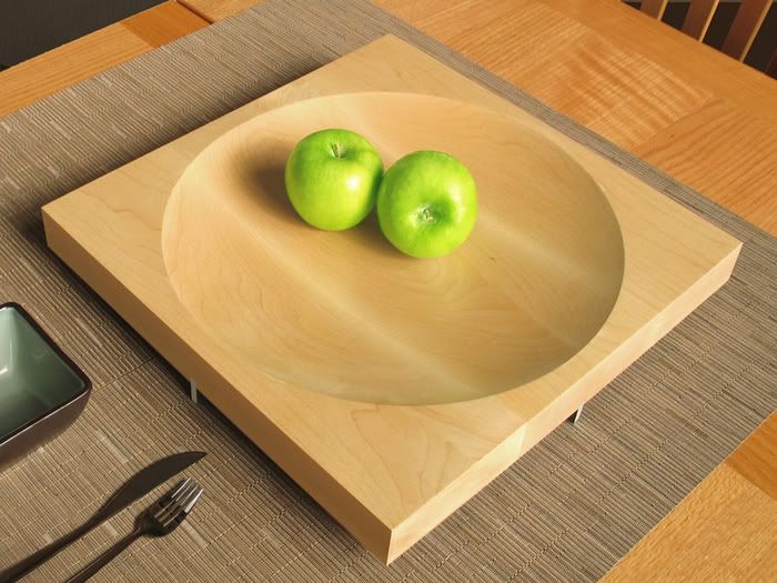 It pays to be an important person in Jim Doan's life. He'l produce gorgeous, high-quality, handcrafted items with o without you; but if he loves you he might name one afte you. The Lien bowl is named after his mother, and if w wanted to get all serious on you, we could mention how it status as a great centerpiece for a table reflects th significance of the nurturing and providing mother, an how its hand-lathed warmth shows the obvious respect an affection Jim has for his mom. But we're not a seriou bunch here. Instead, we'll just point out that the satin-coated (food-safe) maple wood looks elegant yet casual and that the aluminum base, while sturdy, almos disappears, making it look like the bowl just floats invitingl above your table